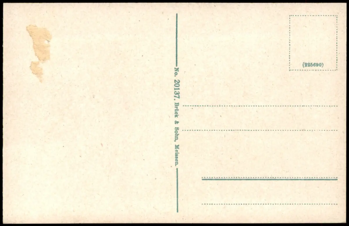 auf der Rückseite Kleberückstände und abgerissenes Papier