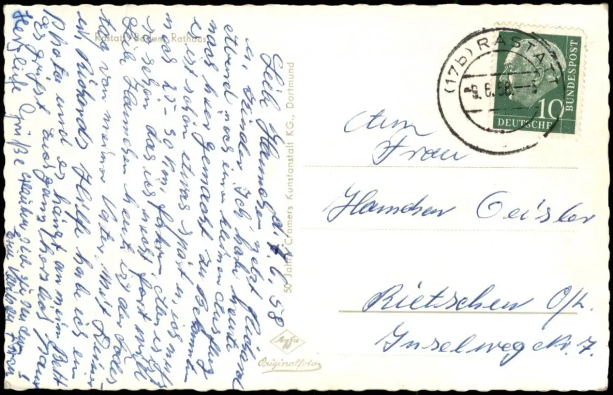 Ansichtskarte Rastatt Rathaus, Denkmal - Auto 1958