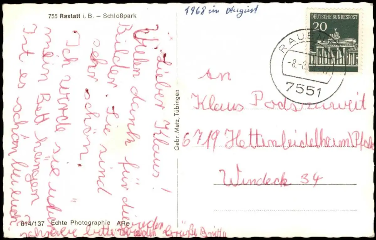 Ansichtskarte Rastatt Schloßpark 1968
