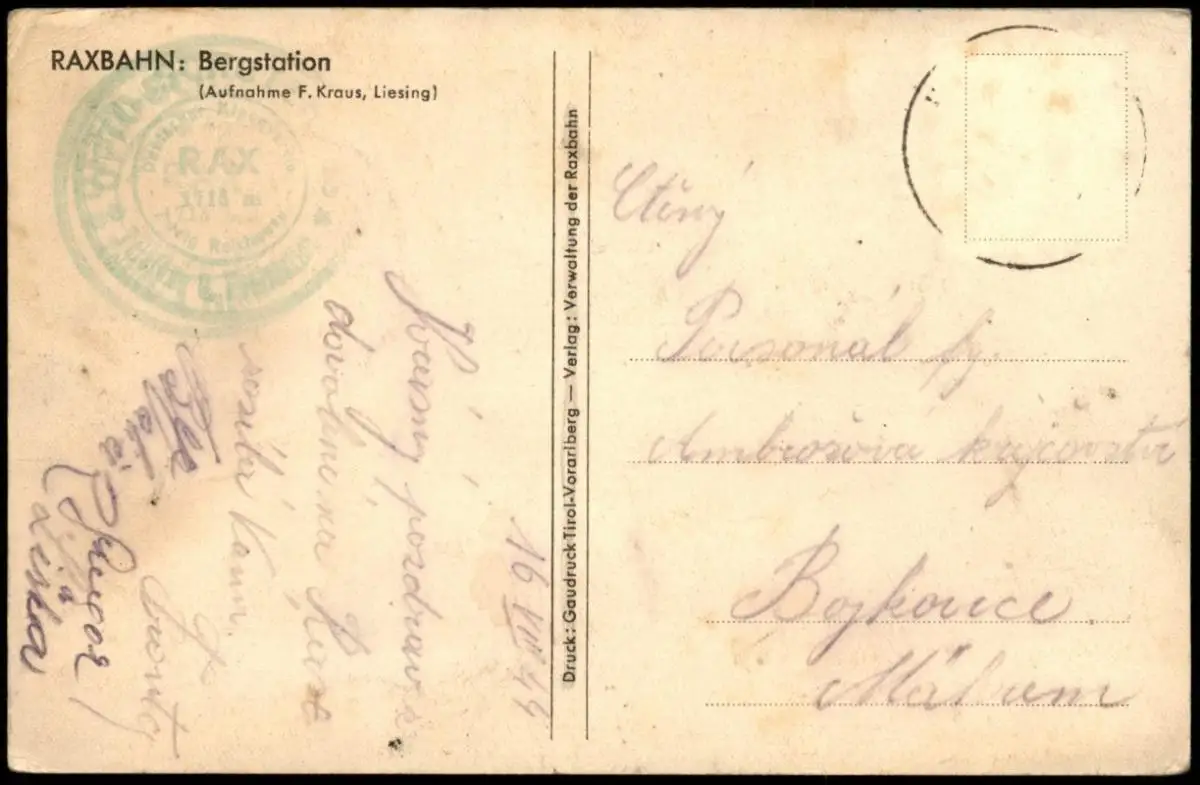 Ansichtskarte Reichenau an der Rax RAXBAHN: Bergstation 1944