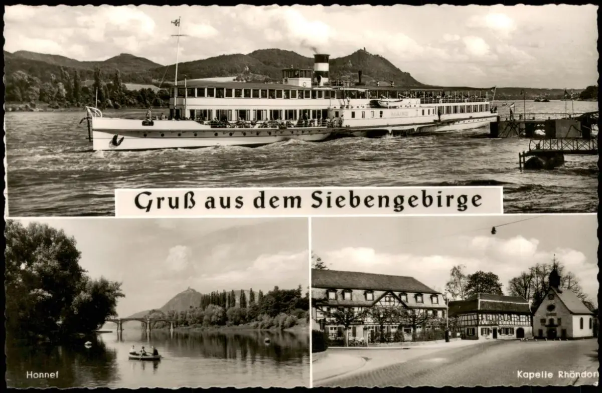 Ansichtskarte Rhöndorf-Bad Honnef Rheindampfer,Partie an der Kapelle 1958