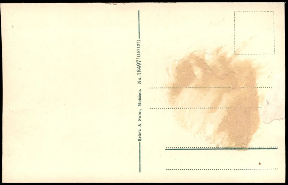 auf der Rückseite Kleberückstände und abgerissenes Papier