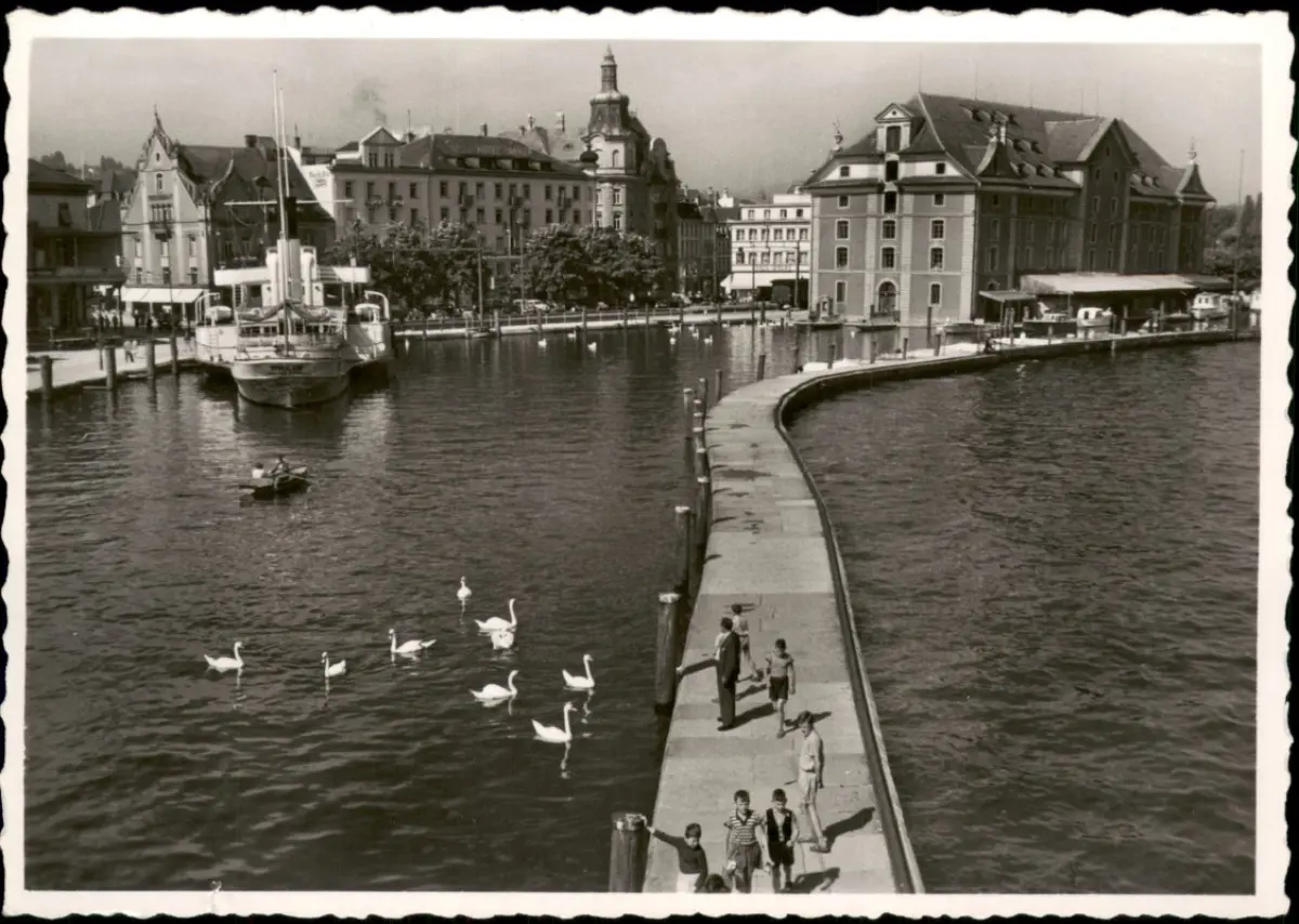 Ansichtskarte Rorschach Hafen mit Kornhaus 1955