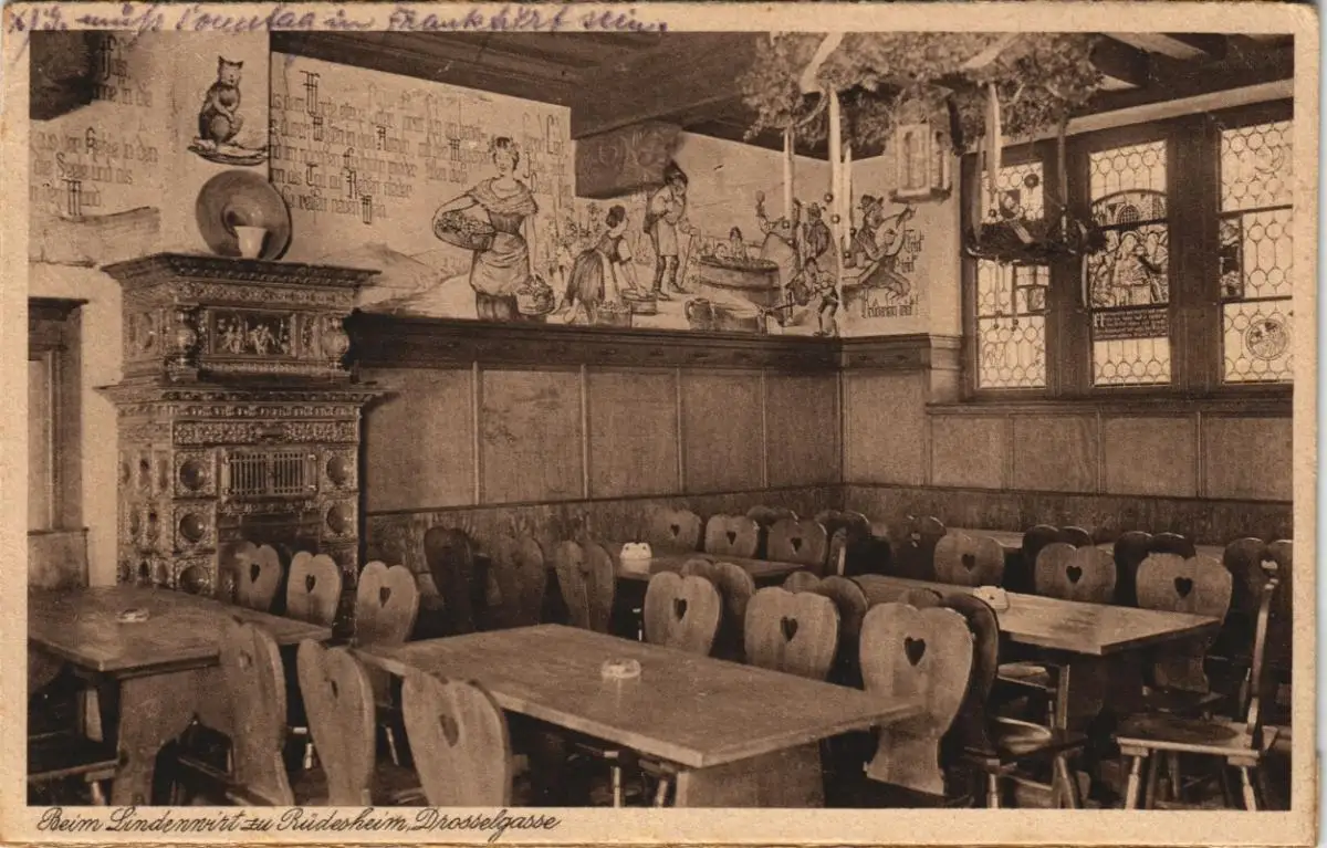 Ansichtskarte Rüdesheim (Rhein) Der Lindenwirt - Gastraum 1928