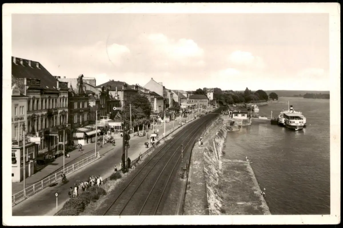 Ansichtskarte Rüdesheim (Rhein) Panorama-Ansicht Rhein Partie 1954