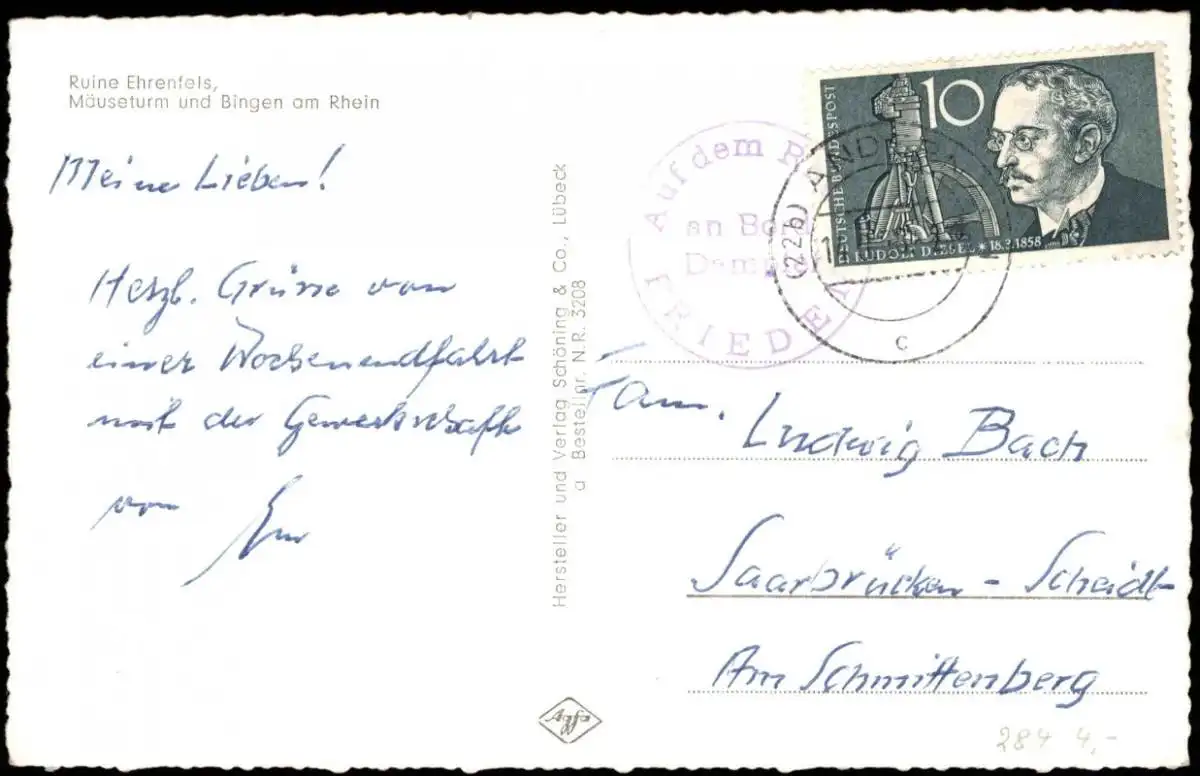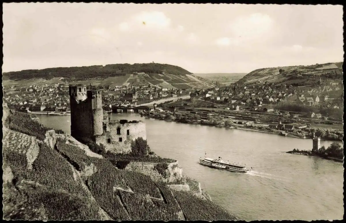 Ansichtskarte Rüdesheim Rhein Rheindampfer 1962 Bordstempel Dampfer Frieden