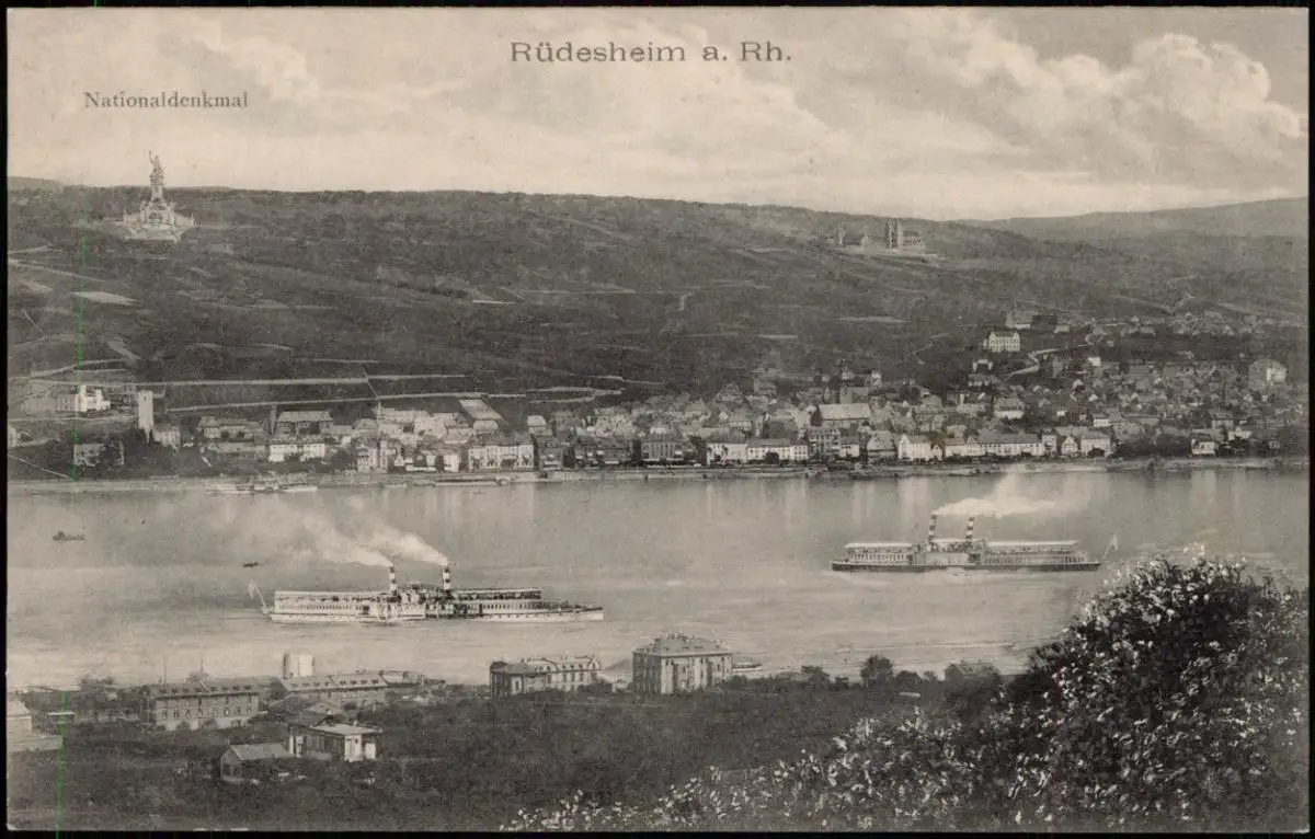 Ansichtskarte Rüdesheim (Rhein) Stadt, Dampfer - Nationaldenkmal 1917