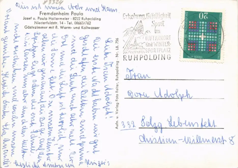 Ansichtskarte Ruhpolding Fremdenheim Haus Paula 1970