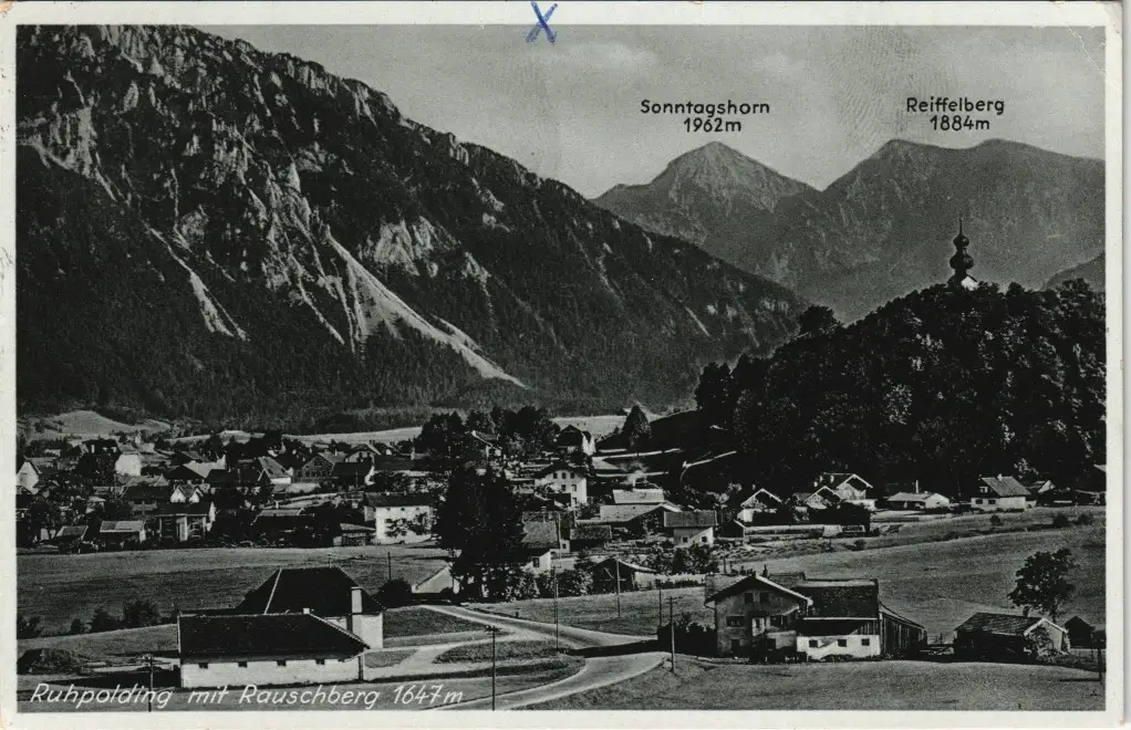 Ansichtskarte Ruhpolding Straßenpartie mit Rauschberg 1936