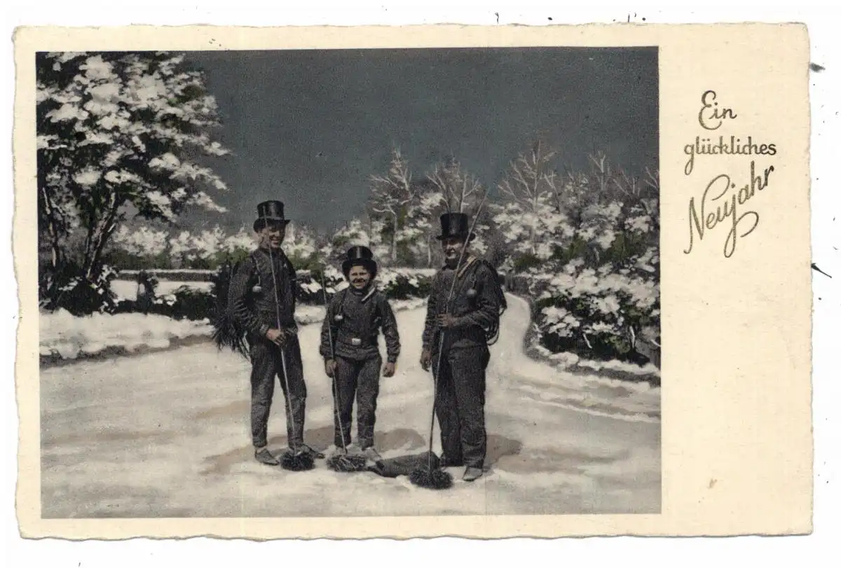 [Ansichtskarte] SCHORNSTEINFEGER / CHIMNEY SWEEPES / ROMANEUR, Neujahrsgrüßsse / New Year Greetings, 1931.