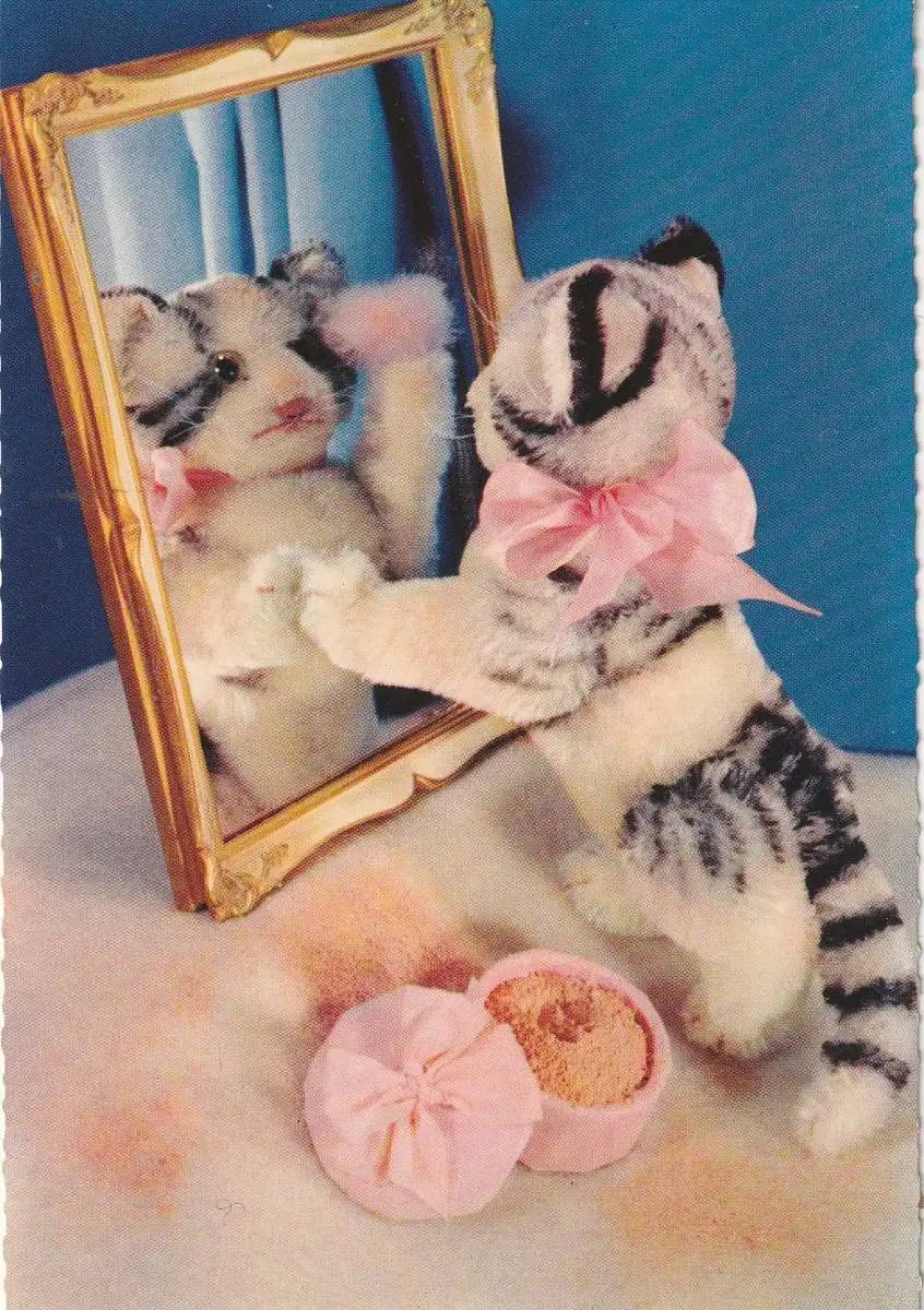 [Ansichtskarte] SPIELZEUG / TOYS - STEIFF - KATZE im Spiegel.
