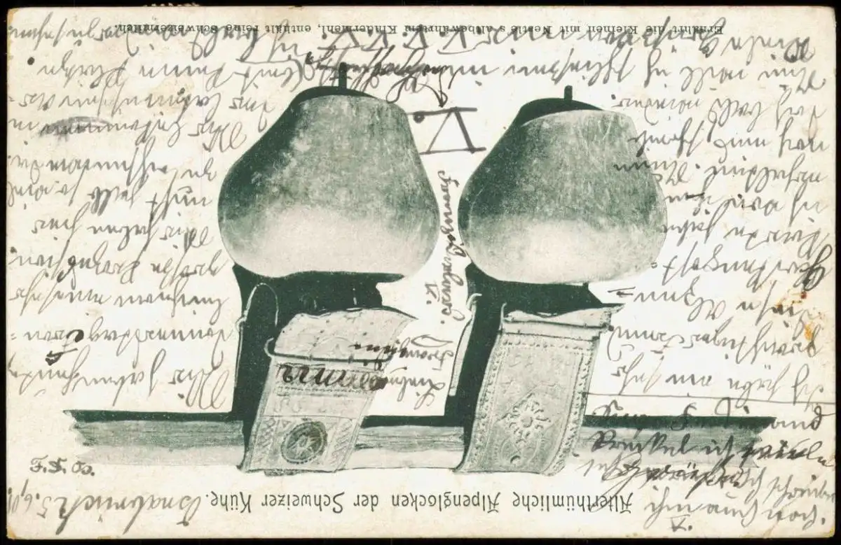 Ansichtskarte .Schweiz Allerthümliche Alpenglocken der Kühe 1901 Helvetia