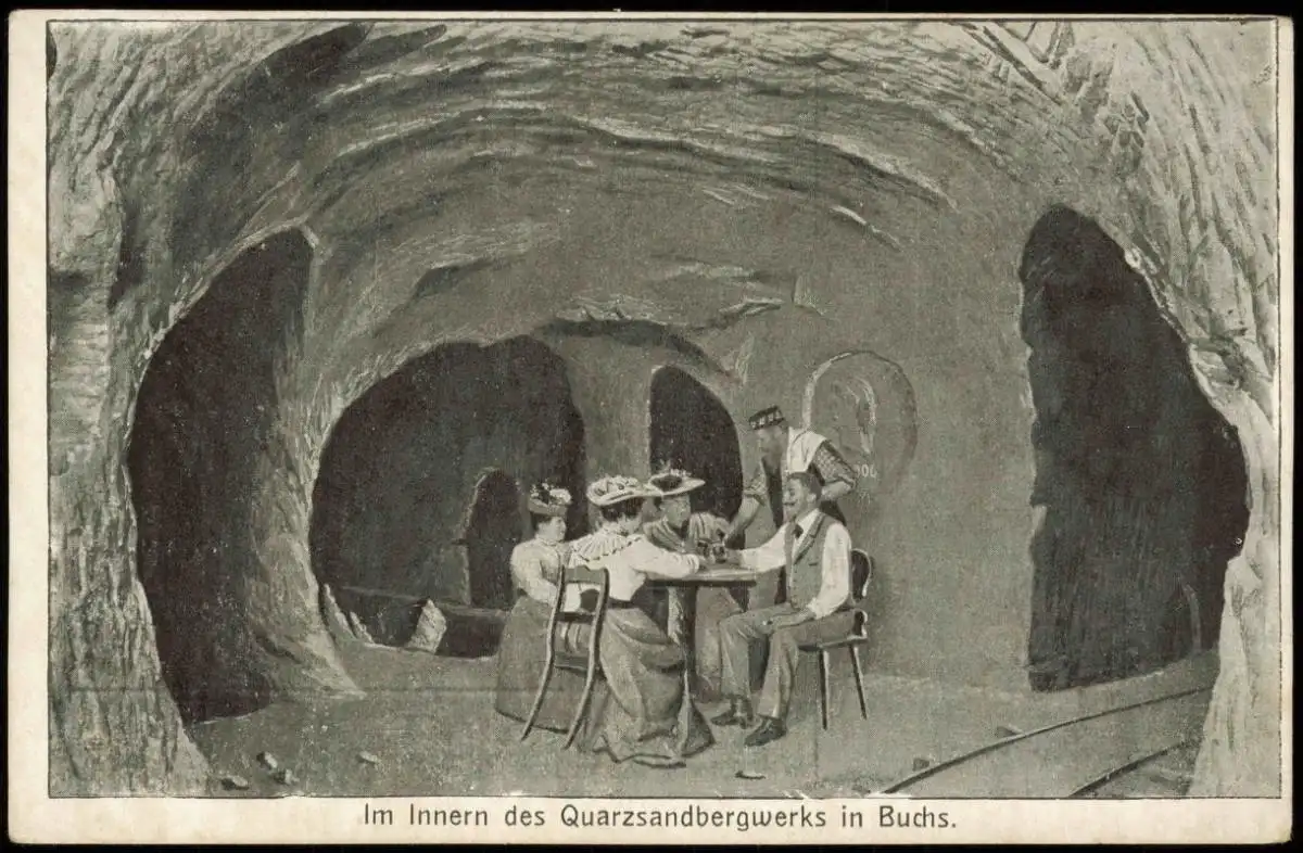 Ansichtskarte .Schweiz Im Innern des Quarzsandbergwerks in Buchs 1912