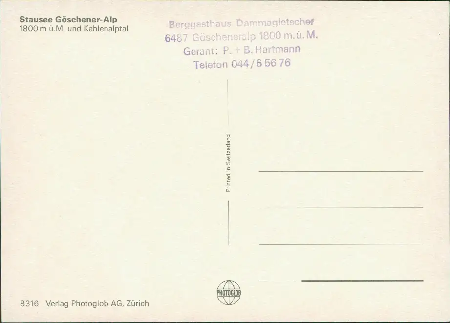 Ansichtskarte .Schweiz Stausee Göschener-Alp und Kehlenalptal 1990