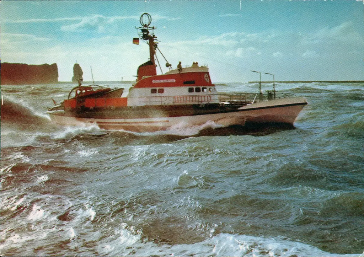 Ansichtskarte Seenotkreuzer Adolph Bermpohl stürmische See 1981