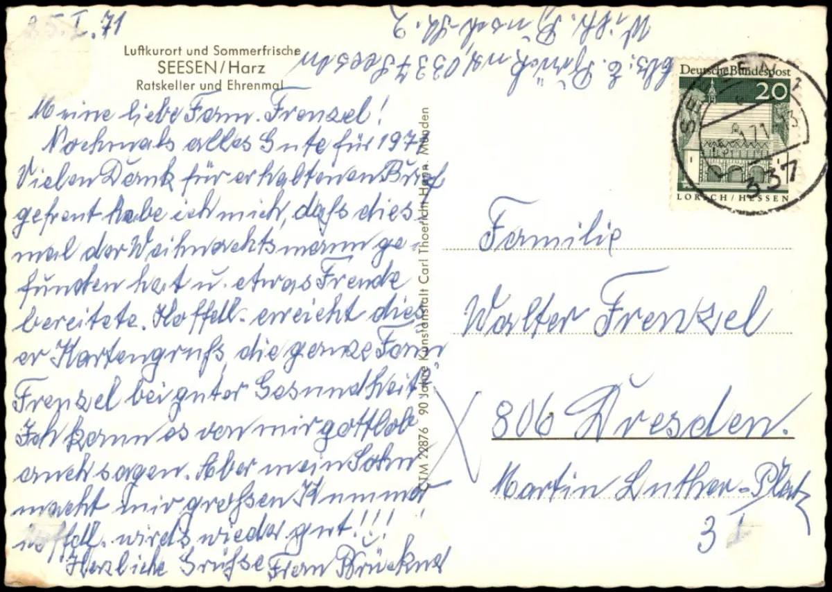 Ansichtskarte Seesen Ratskeller und Ehrenmal 1971
