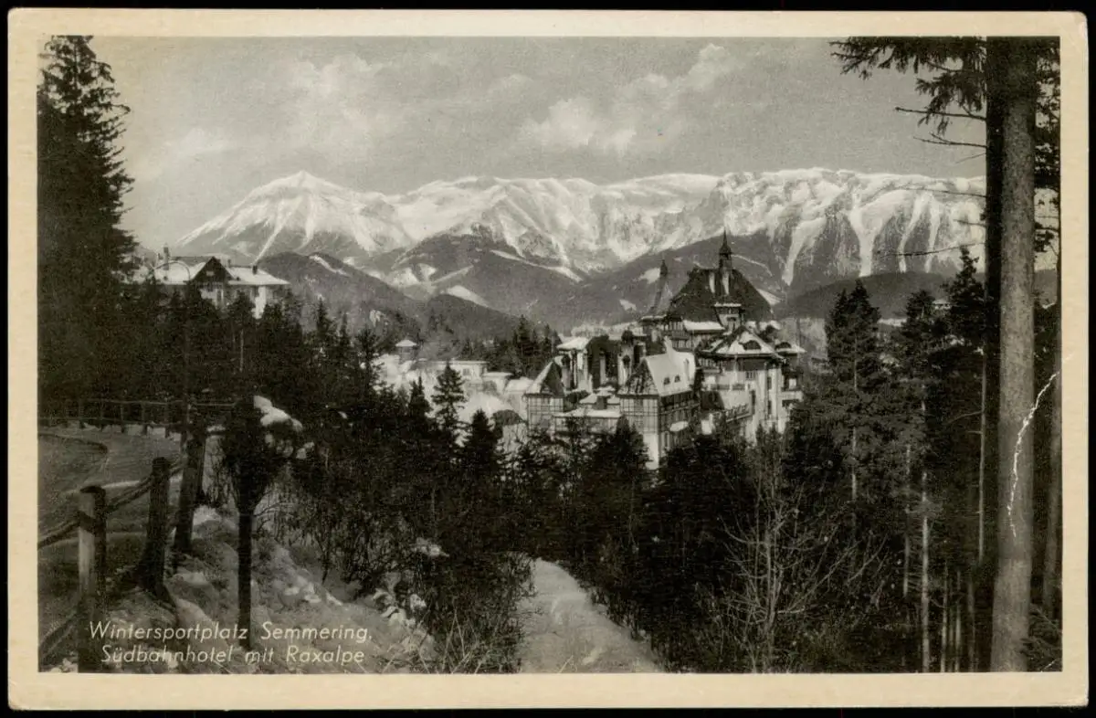 Ansichtskarte Semmering Südbahnhotel mit Raxalpe 1930