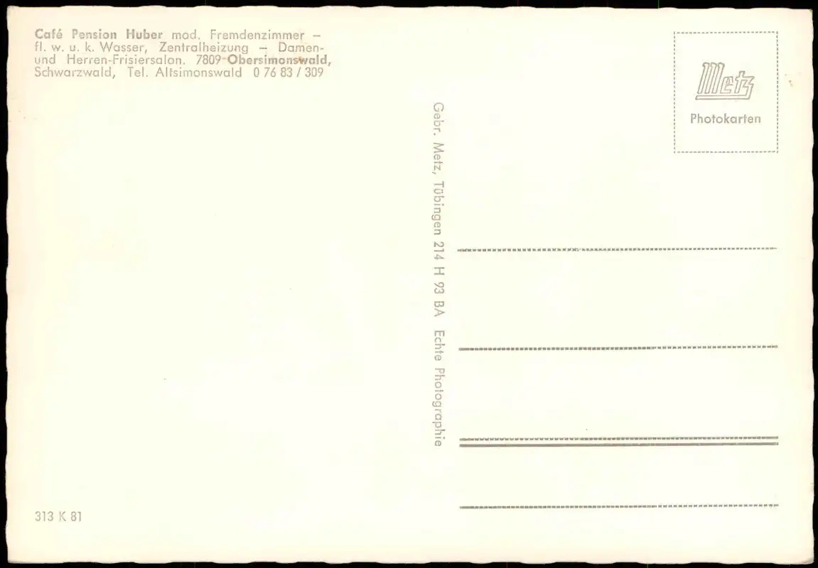 Ansichtskarte Simonswald Café Pension Huber 1977