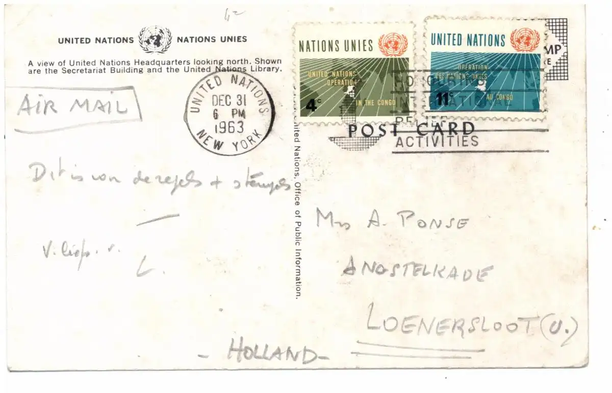 [Ansichtskarte] USA - NEW YORK, UNITED NATIONS 1963, Frankatur UNO Troops in Congo, Michel 120/21.