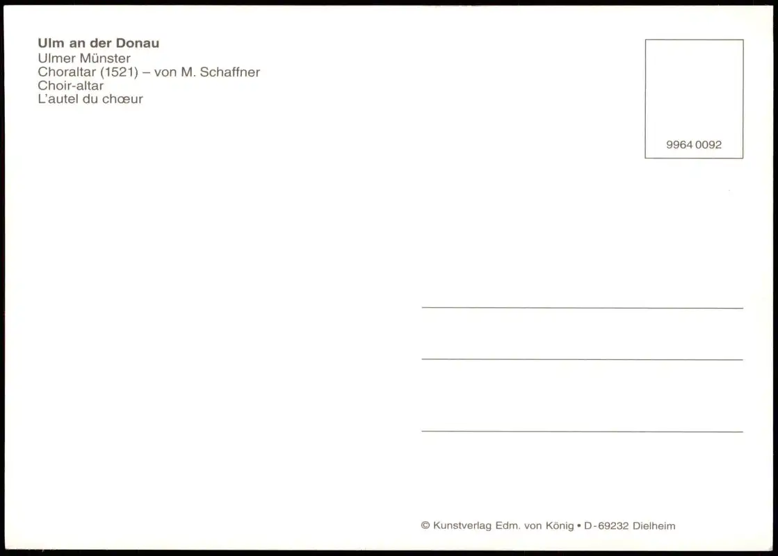 Ansichtskarte Ulm a. d. Donau Ulmer Münster Choraltar von M. Schaffner 1990