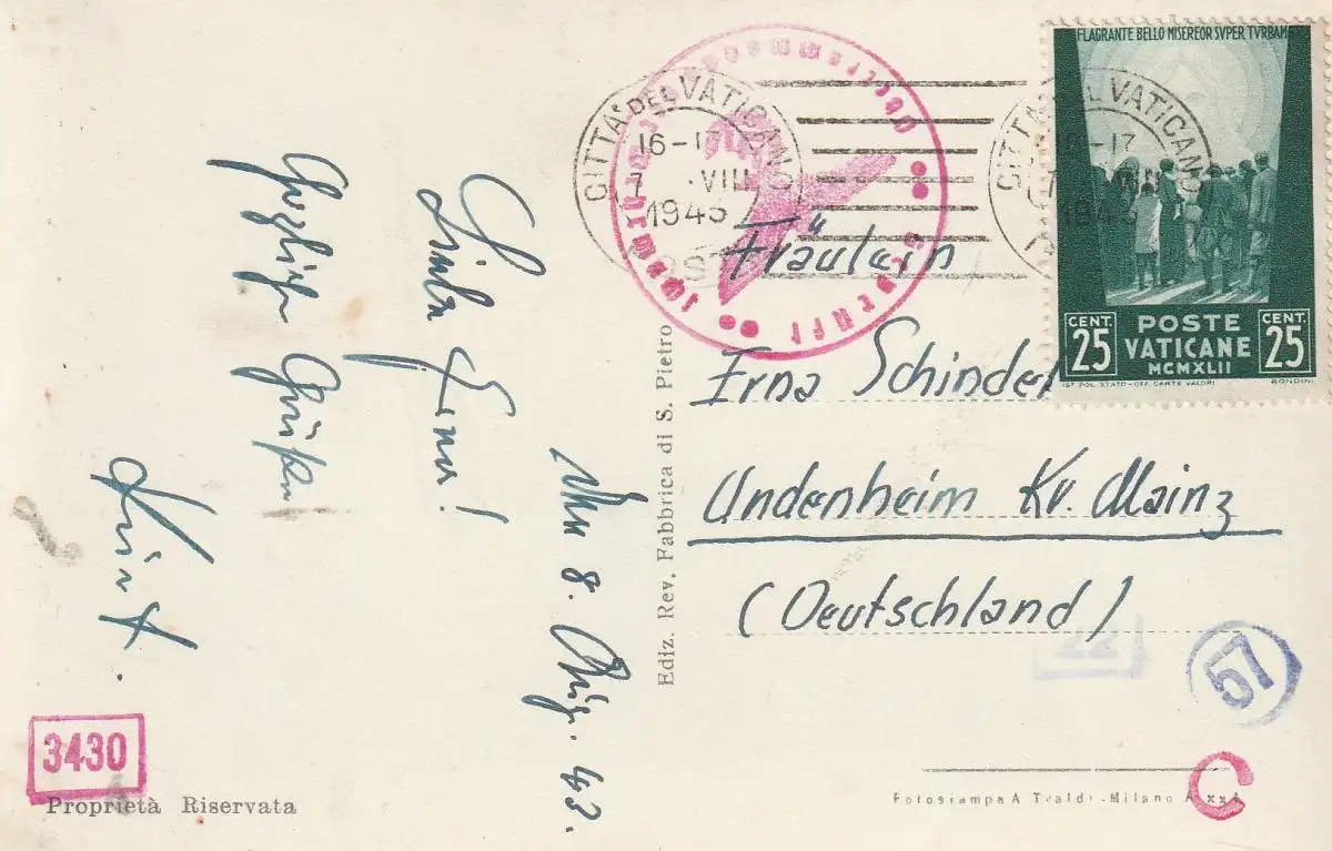 Titel: VATICAN - Basilica di S. Pietro, 1943, Zensuren nach Deutschland
