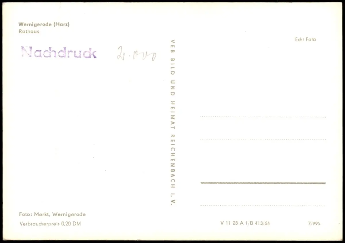Ansichtskarte Wernigerode Rathaus 1964