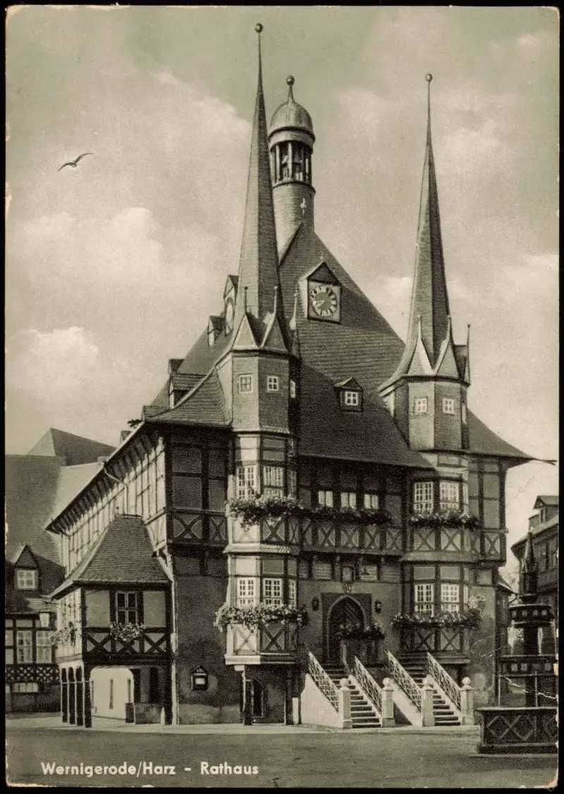 Ansichtskarte Wernigerode Rathaus zur DDR-Zeit 1958