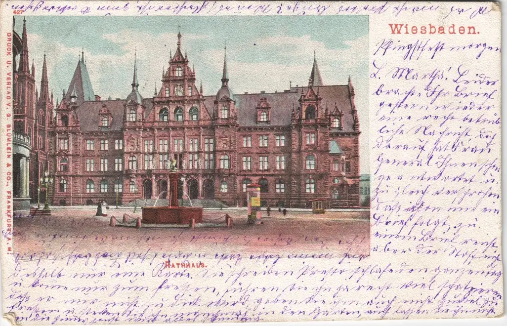 Ansichtskarte Wiesbaden Rathaus, Litfasssäule 1902