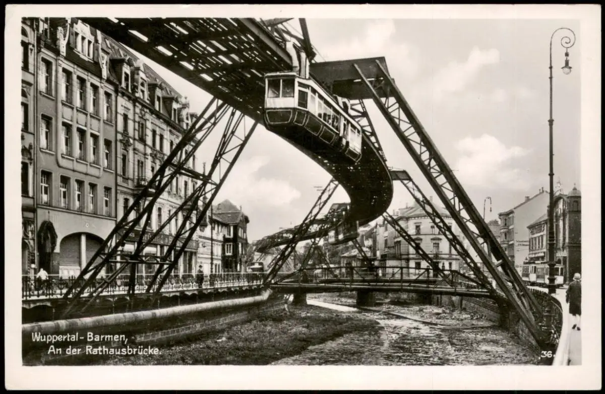 Ansichtskarte Wuppertal Schwebebahn Rathauserbrücke 1953