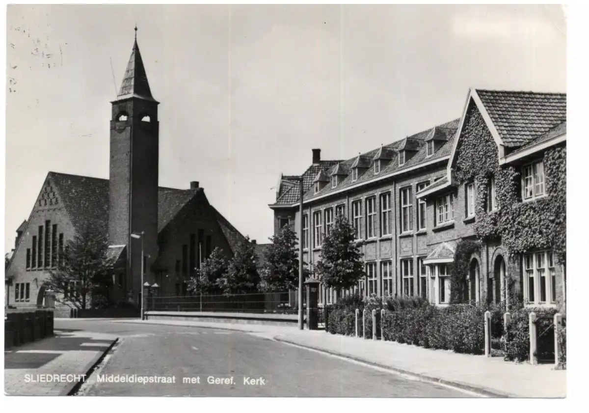 [Ansichtskarte] ZUID - HOLLAND - SLIEDRECHT, Middelsiepstraat met Geref. Kerk, Ed.: Boekhandel De Waard.