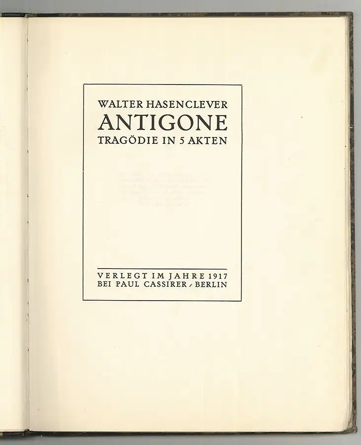 Bemerkungen: W.-G.² 8; Raabe 107.8 - Erstausgabe von Walter Hasenclevers (1890-1940) "Antigone".