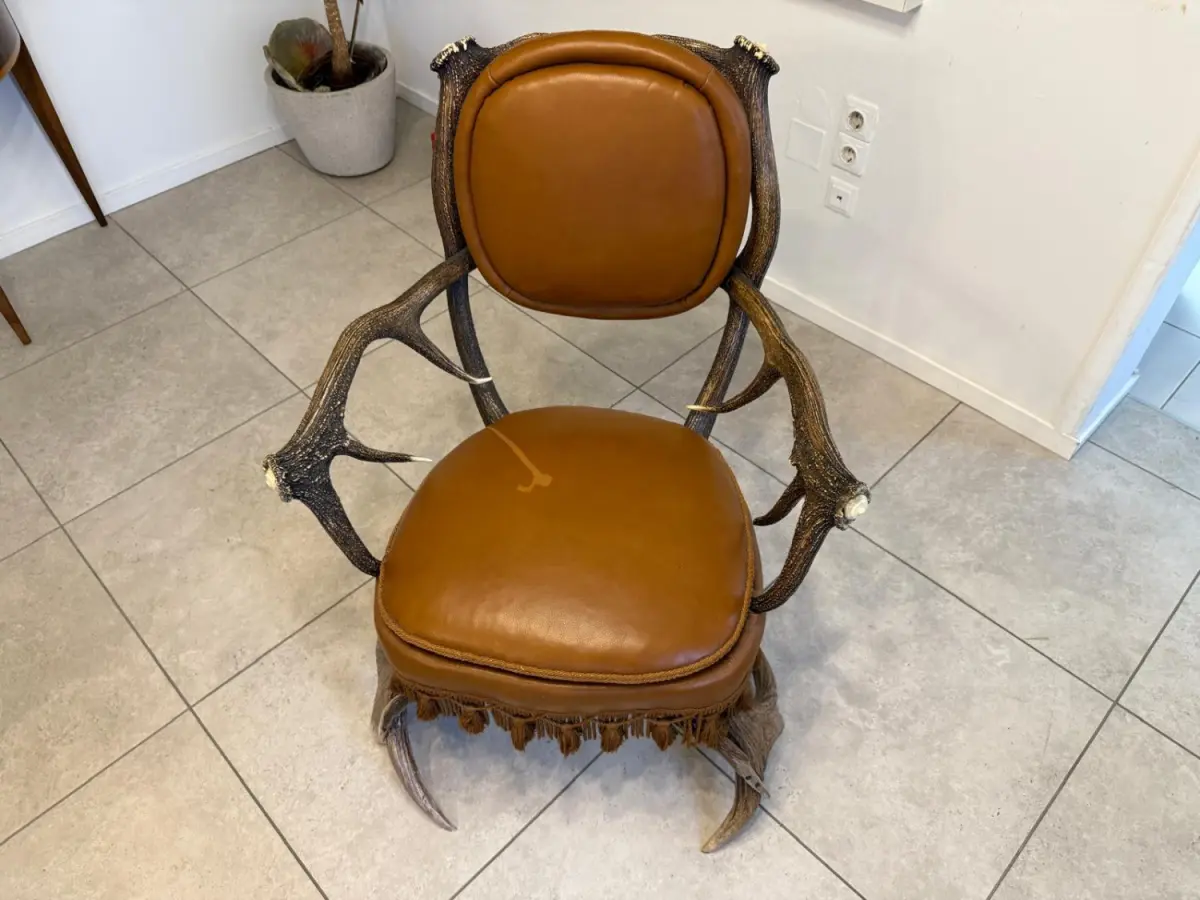 Die organische Formsprache der Geweih-Elemente macht dieses Fotel zu einem Blickfang, der sowohl rustikale als auch moderne Interieurs aufwertet.