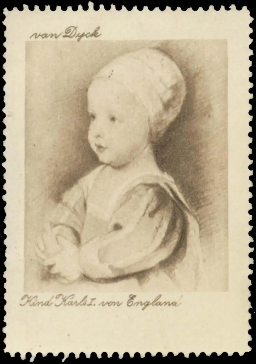 Kind Karls I. von England, Größe/Zustand: 6x4 , guter Zustand, Original alte Reklamemarke die seinerzeit für die Werbung benutzt wurde