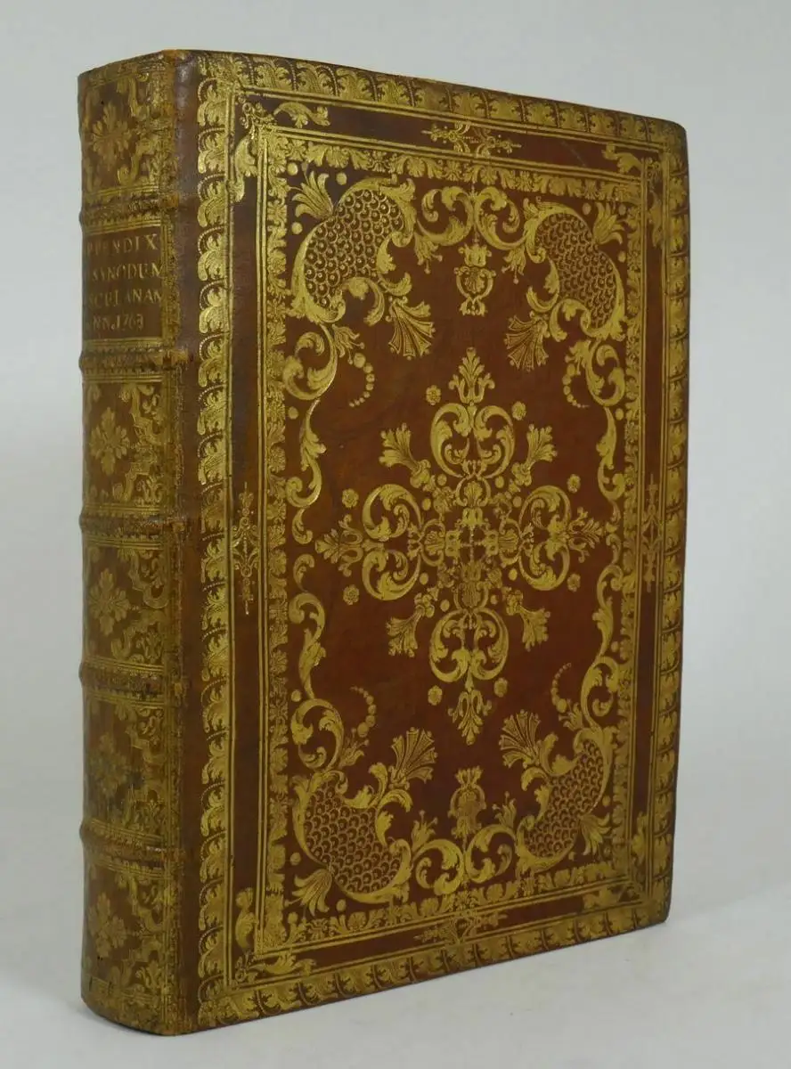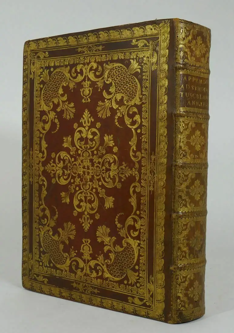 Romae, Excudebat Generosus Salomoni 1764. 4°. 766 S. (Tit. in Rot u. Schwarz) Mit gest. Titelvign. Ldr. d. Zt. m. reicher floraler Goldprägung. Vollgoldschnitt. Kl. Namenstempel a. flieg. Vors. u. Tit.