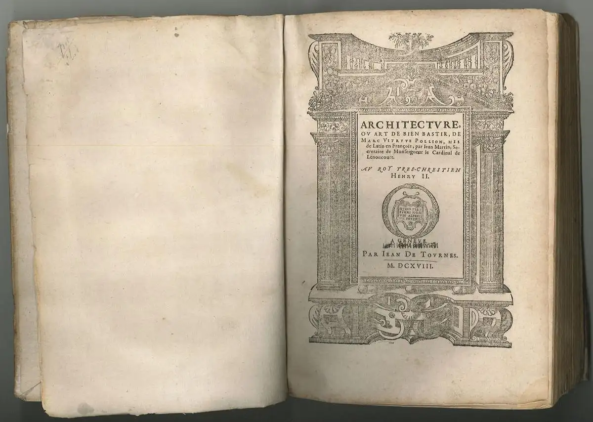 ArtikeldetailsArchitecture ou arte de bien bastir, de Marc Vitruve Pollion mis de Latin en Francois, par Iean Martin, Secretaire d Monseigneur le Cardinal de Lenoncourt. Au Roy tres-chrestien Henry II. VITRUVIUS POLLIOS, Marcus.