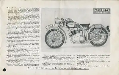2 4 Seiten 23 x 15 cm RBZ 100 Windspiel 98 ccm 2,2 PS RBZ 125 Tropf 125 ccm 3,5 PS RBZ 200 Wanderfalk 197 ccm 7 PS RZ 200 Peter 197 ccm 7 PS RBK 200 Feuerreiter 197 ccm 9 PS RBU 350 Waldläufer 344 ccm 10 PS RBU 505 Kamerad 500 ccm 14 PS RBK 505 Bergfreund 500 ccm 20 PS Mit Gebrauchsspuren, Rückseite schmutzig