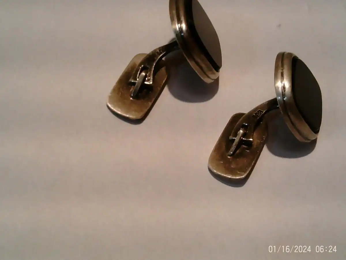 Art Deco Manschettenknöpfe Onyx gefasst in Silber 835