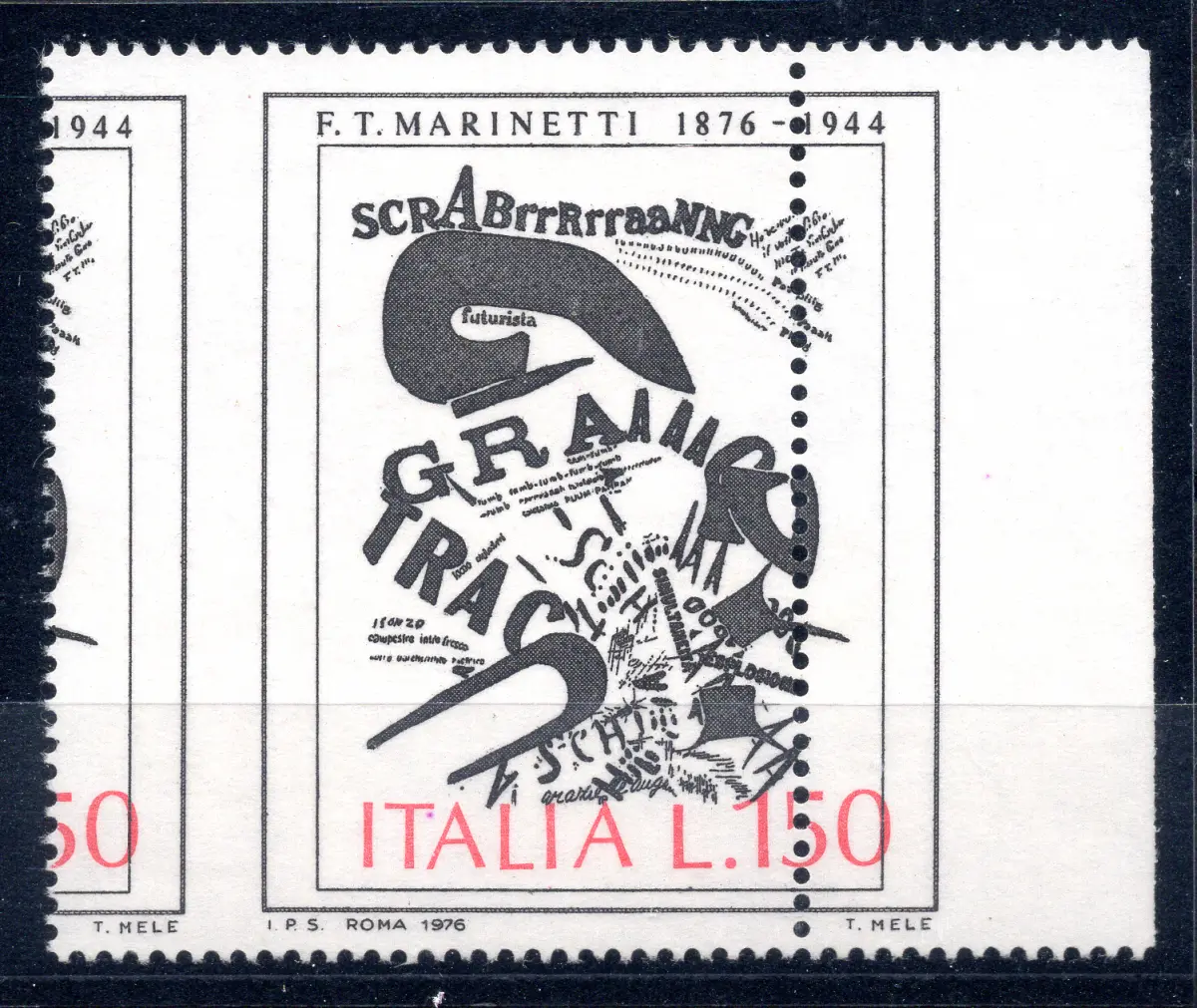 Vollgummi - Arte '76 Marinetti Nr. 1338 stark verschobene vertikale Verzahnung b. von f. - Selten, extrem unterbewertet Nr. 624/L