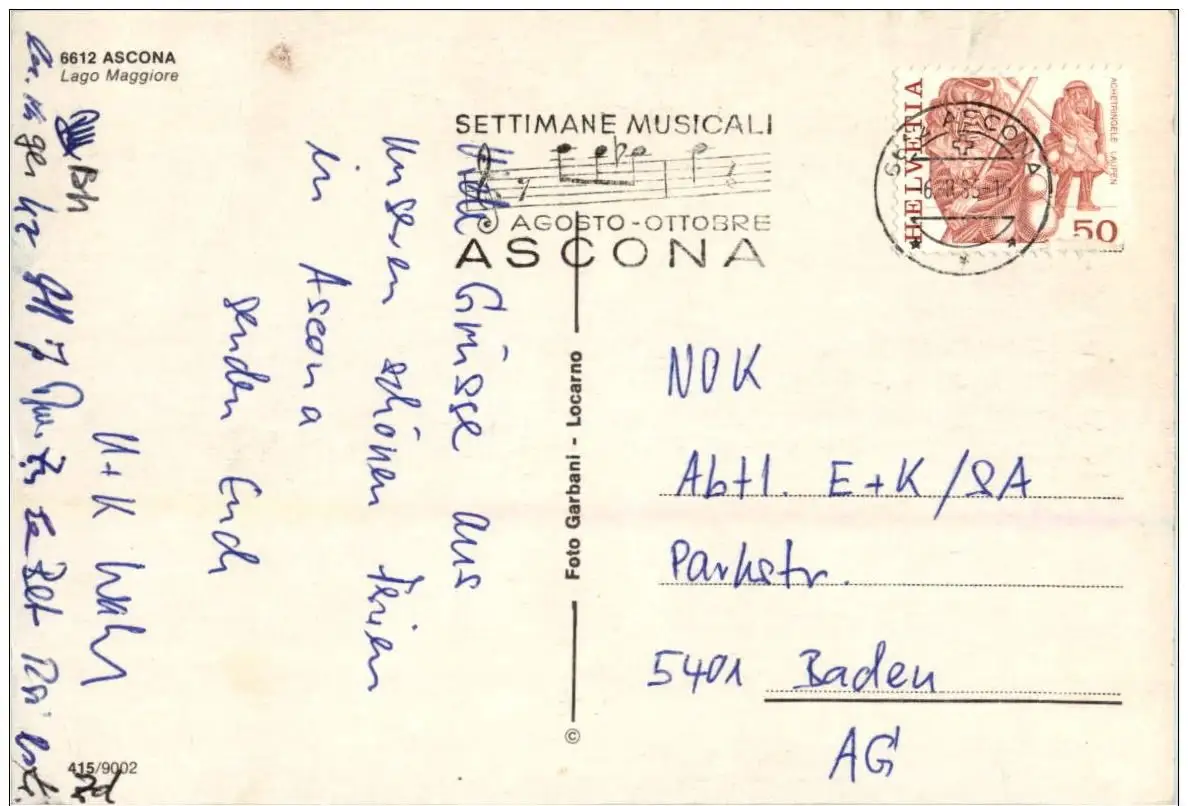 Danke. Alles Bestens. Können Sie mir allenfalls mitteilen, aus welchem Jahr die Postkarte stammt? Besten Dank.