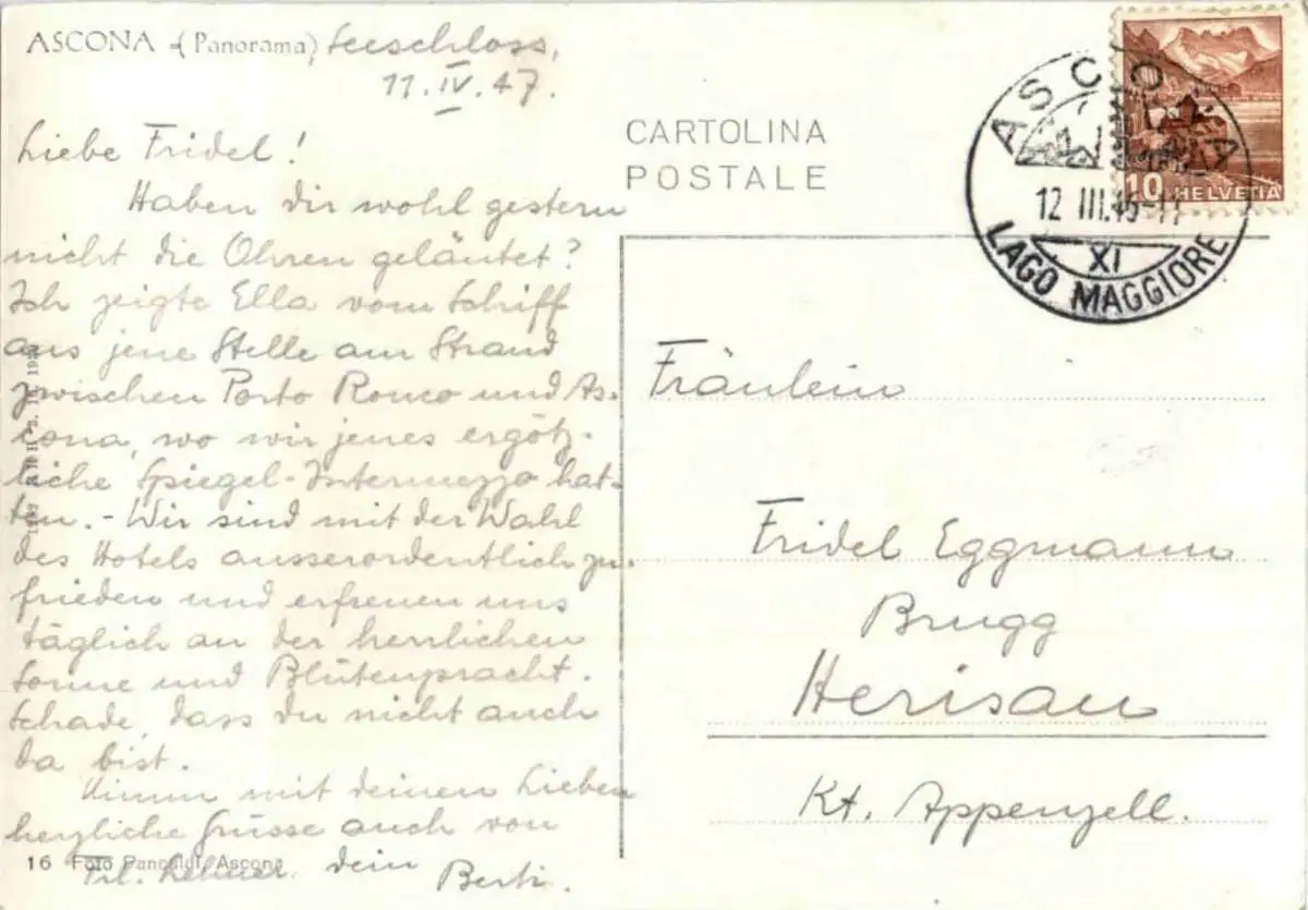 Danke. Alles Bestens. Können Sie mir allenfalls mitteilen, aus welchem Jahr die Postkarte stammt? Besten Dank.