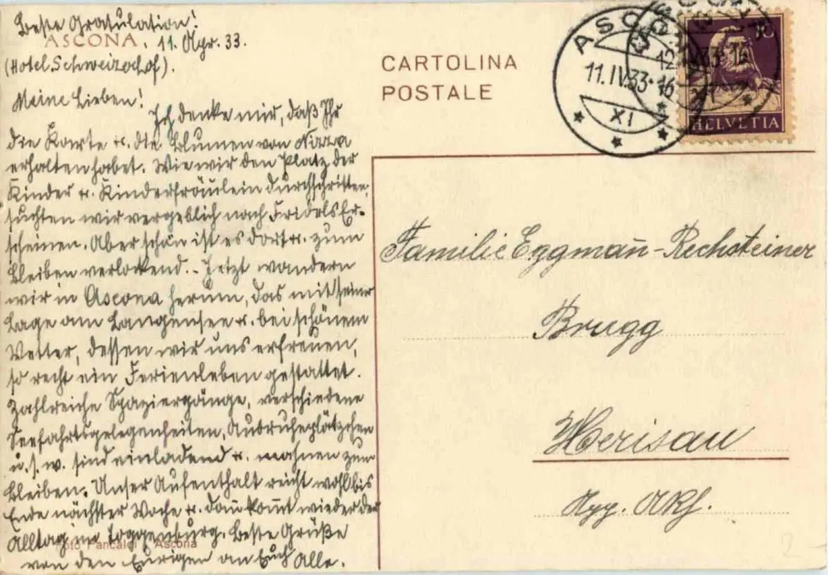 Danke. Alles Bestens. Können Sie mir allenfalls mitteilen, aus welchem Jahr die Postkarte stammt? Besten Dank.