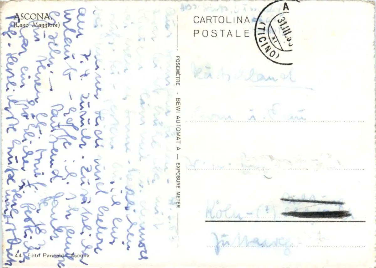 Danke. Alles Bestens. Können Sie mir allenfalls mitteilen, aus welchem Jahr die Postkarte stammt? Besten Dank.