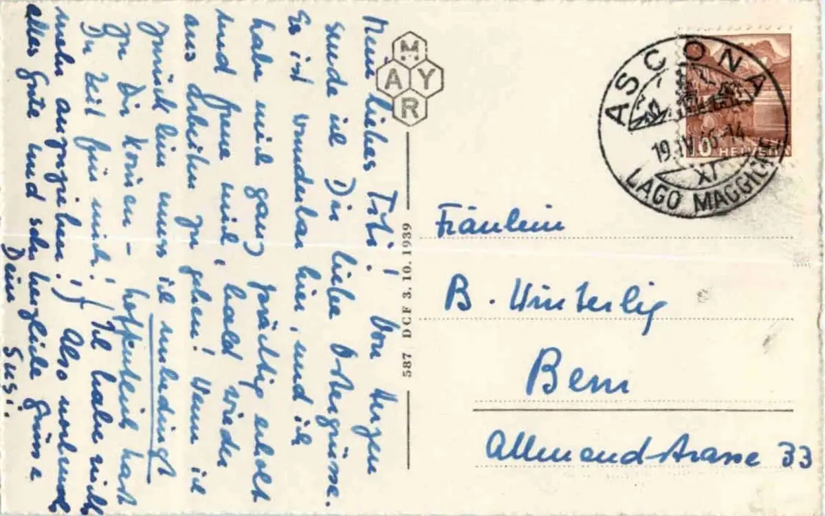 Danke. Alles Bestens. Können Sie mir allenfalls mitteilen, aus welchem Jahr die Postkarte stammt? Besten Dank.
