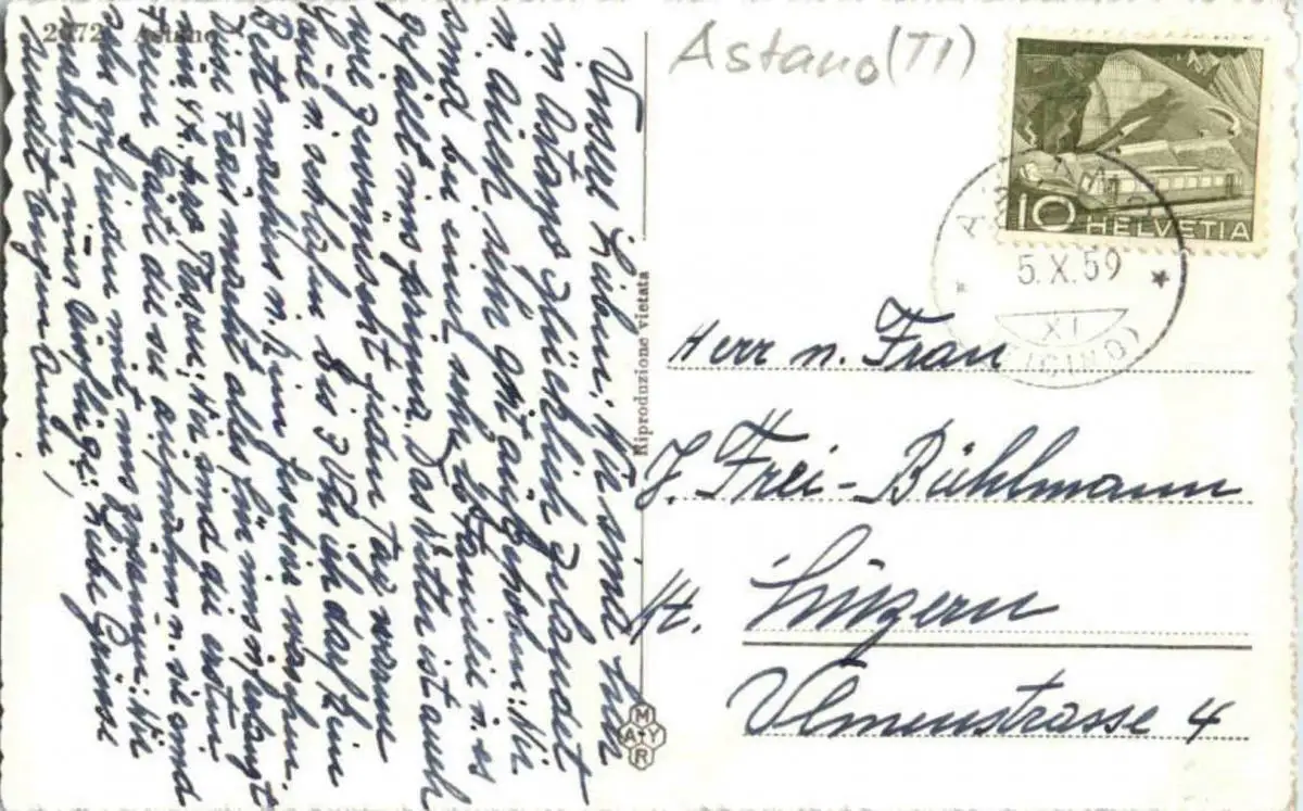 Danke. Alles Bestens. Können Sie mir allenfalls mitteilen, aus welchem Jahr die Postkarte stammt? Besten Dank.