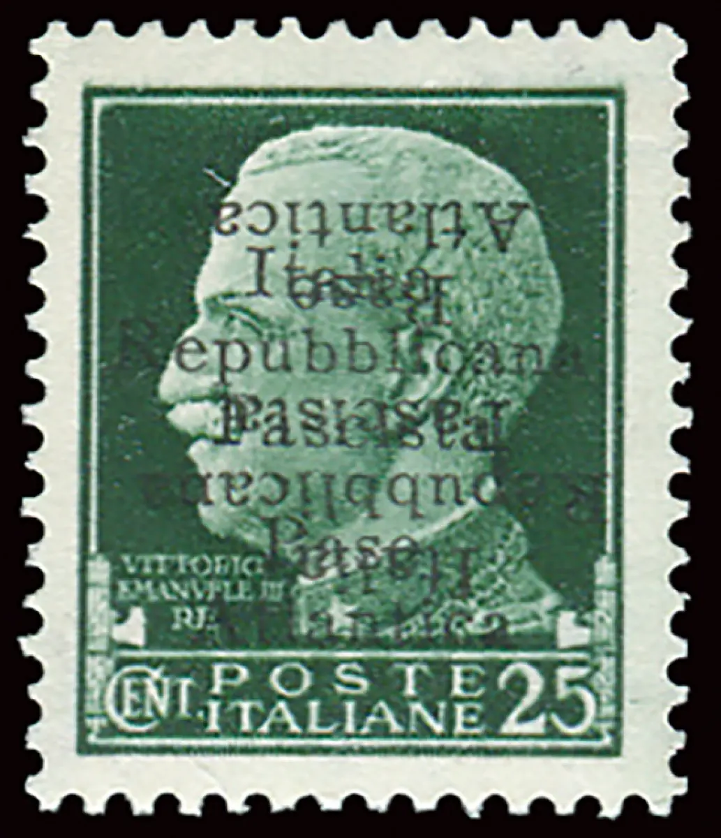 MNH Vollgummi - Atlantic Base - Lokalausgabe Cent. 25 n. 9c Doppelaufdruck davon einer umgedreht - Selten, Auflage 20 Exemplare - S. Vignati - Kat. euro 2.000 Cod. 252/15