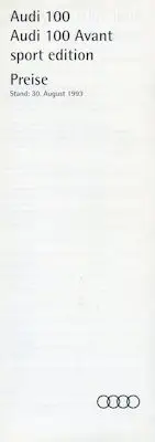 Audi 100 C 4 Sport Edition Preisliste 8.1993