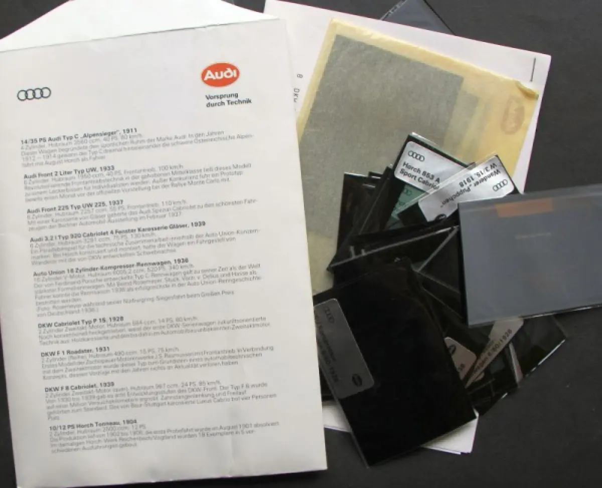 Audi Auto-Union Modellprogramm 1925-1939 Mappe mit 70 Original-Werksdias (10088)