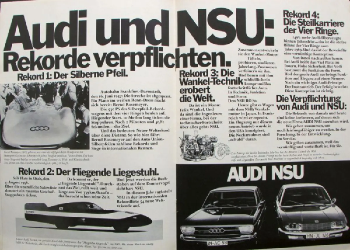 Audi Modellprogramm 1970 "Gemeinsame Sache" Automobilprospekt (10153)