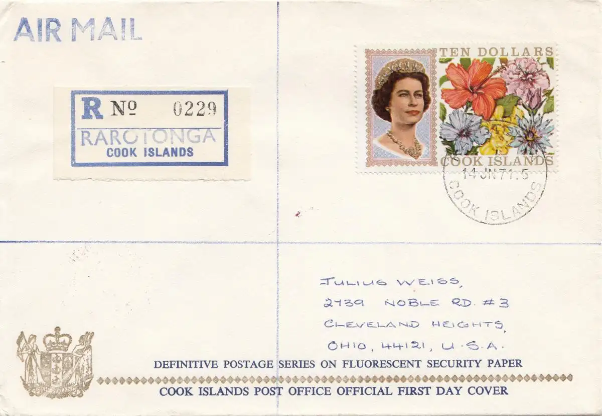 Australien: 1968: Cook Islands Rarotonga - Registered FDC to USA