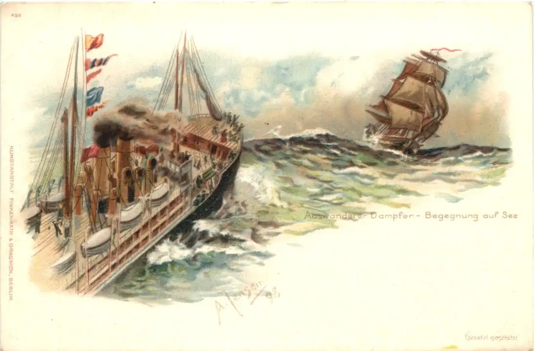 Auswanderer Dampfer - Künstler A. Jensen - Litho -783290